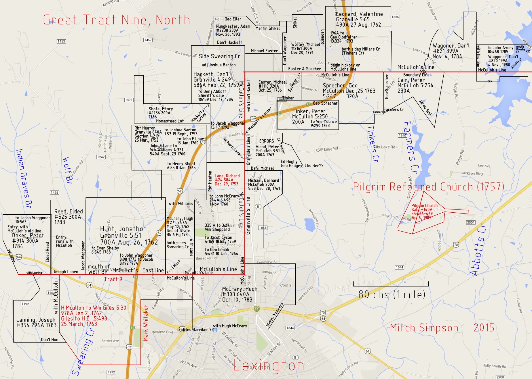Henry McCulloh's 100,000 acre Tract Nine on the Yadkin River and Swearing and Abbotts Creeks