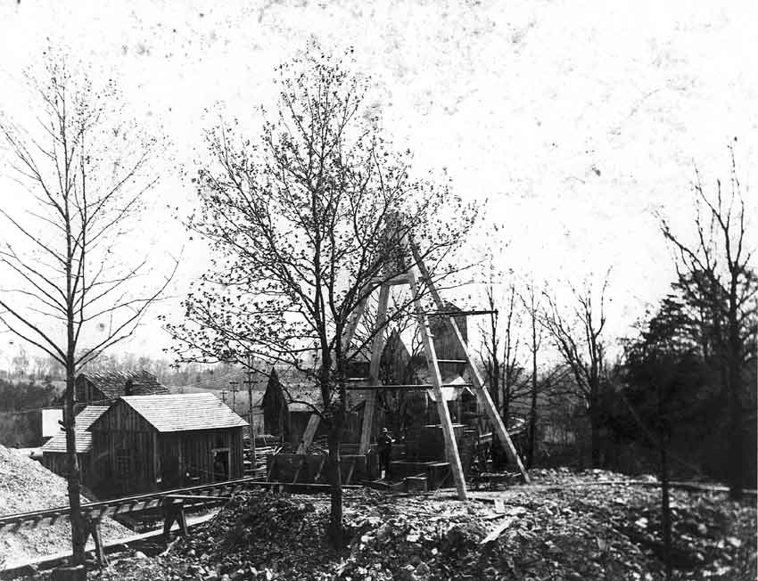 Head Frame South West view, over pump shaft. The tramway ran from Phoenix shaft (NE) to the pump shaft and on to the stamp mill.